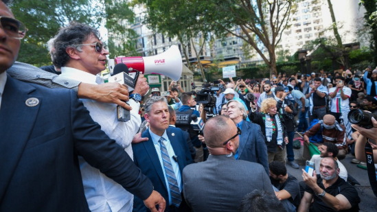 «Desde aquí, desde Nueva York, le pido a todos los soldados del Ejército de los EE.UU. no apuntar contra la humanidad sus fusiles. ¡Desobedezcan la orden de Trump!, ¡Obedezcan la orden de la humanidad!», expresó el mandatario colombiano.
