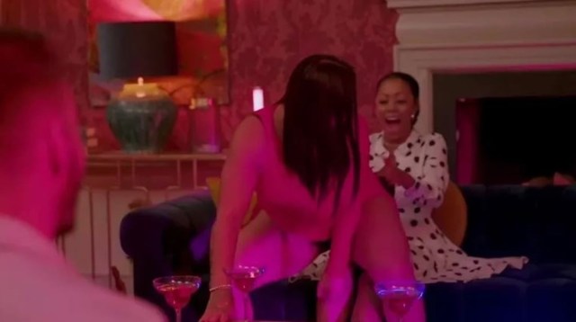 En una de las imágenes, se ve a Linda haciendo twerking frente a la cara de una mujer antes de besar a una pareja al mismo tiempo. Luego, sigue a otras 14 personas, incluido su marido, al piso de arriba para hacer una orgía.