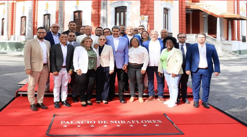 Acompañado de la primera dama de la República, Cilia Flores, el mandatario nacional dio la bienvenida a cada gobernador y gobernadora junto a alcaldes y alcaldesas de su estado, tanto del Gran Polo Patriótico como de los partidos de la oposición democrática que decidieron participar en las elecciones y así obtener el voto del pueblo venezolano.