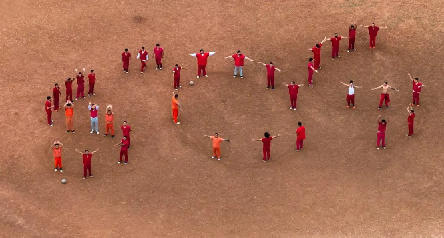 Los detenidos, muchos de los cuales niegan vínculos con pandillas, formaron las letras «SOS» con sus cuerpos en el patio del centro como señal de auxilio, mientras un dron captaba las imágenes.